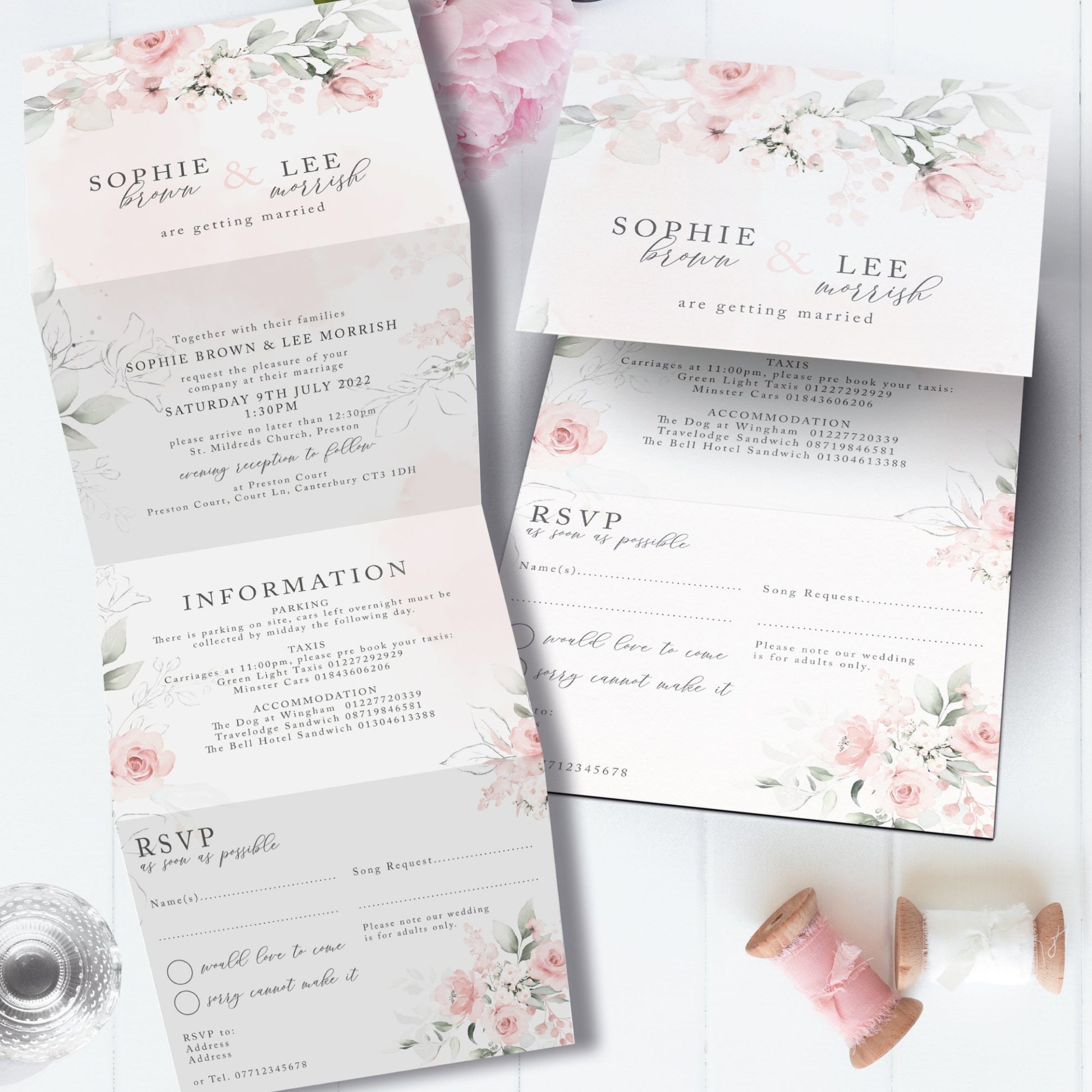Blush Pink Wedding Invitation, Blush Floral Wedding Invitations, Rose Wedding Invites, Dusty Pink Wedding Invite, With Timeline And RSVP