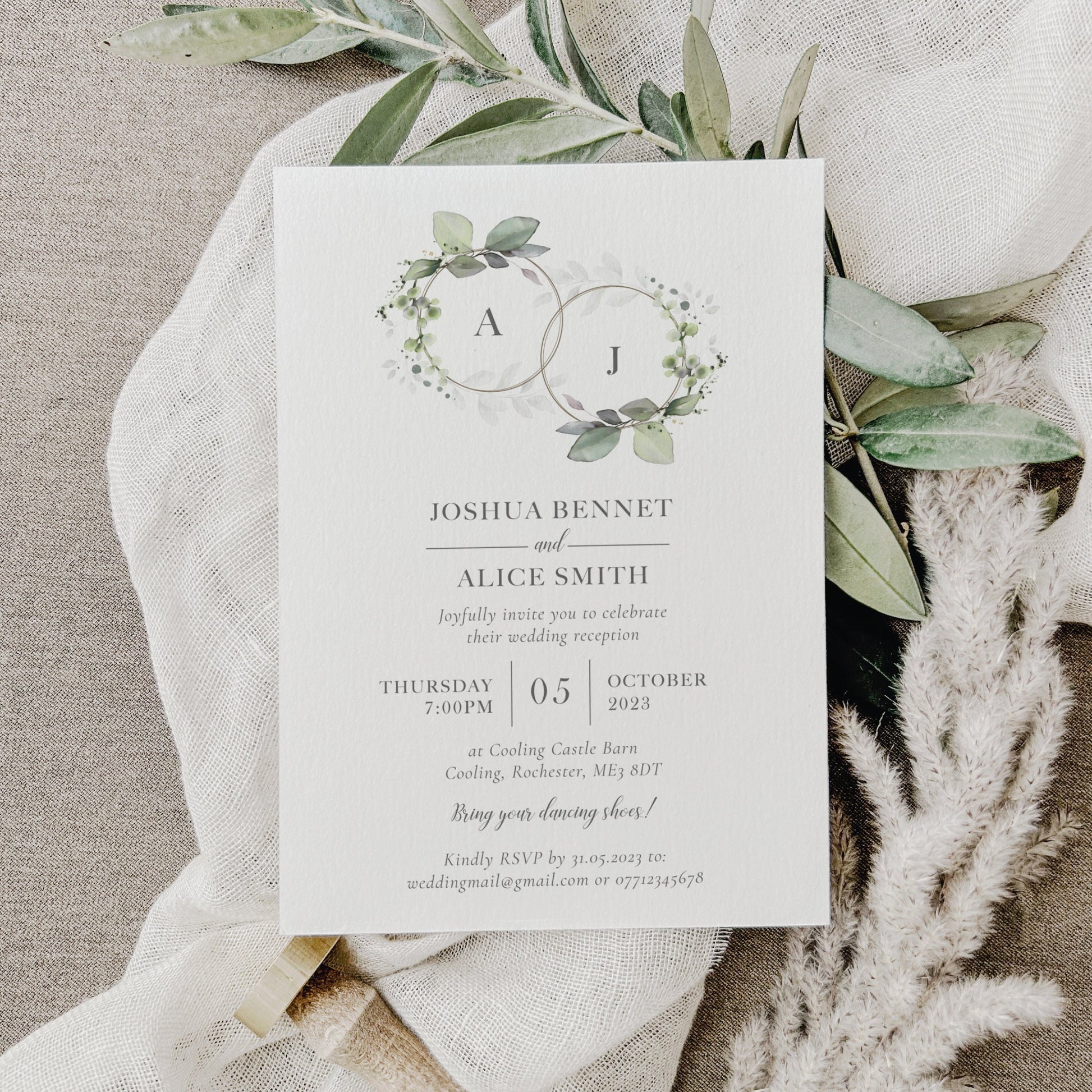 Foliage Wedding Reception Invitation, Elegant Botanical Design, Evening Invites