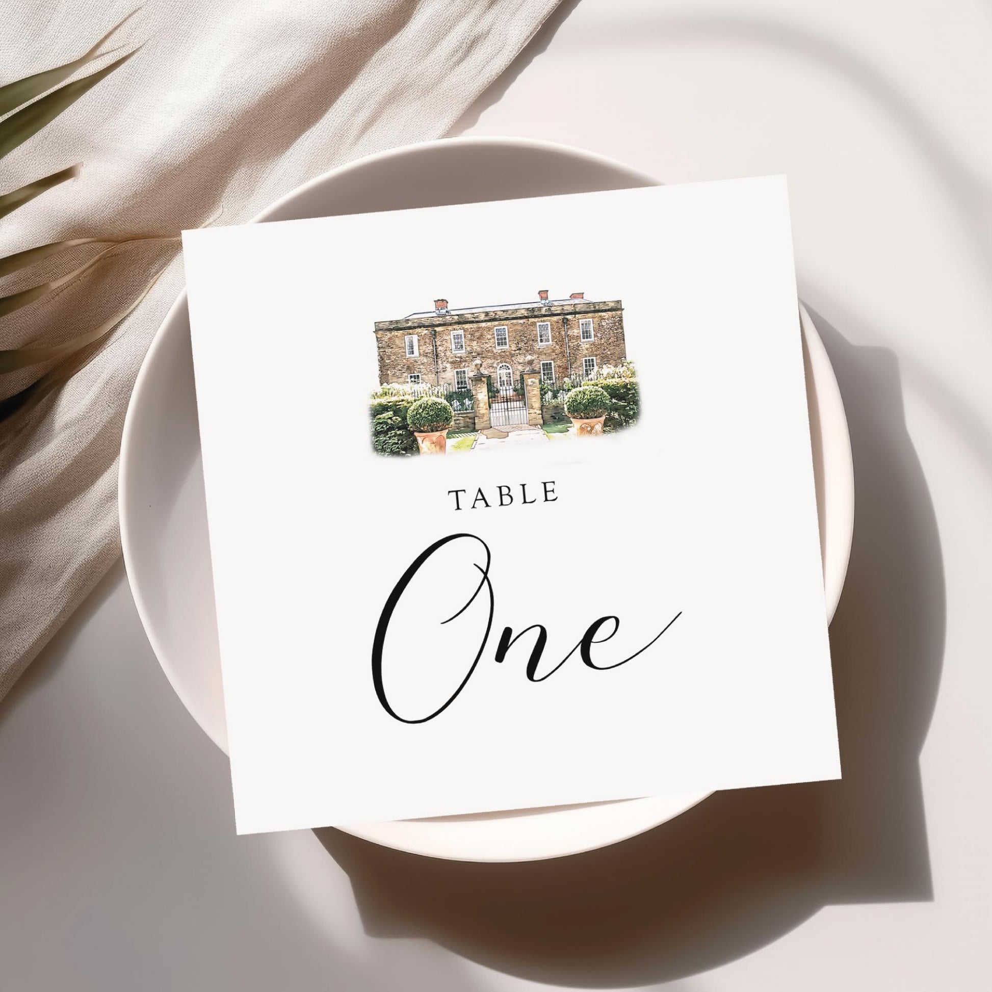 Add a unique and meaningful touch to your reception with these wedding table numbers, each featuring a bespoke sketch of your venue. Combining practicality with personal detail, they guide guests to their seats while showcasing the place where your love story unfolds.