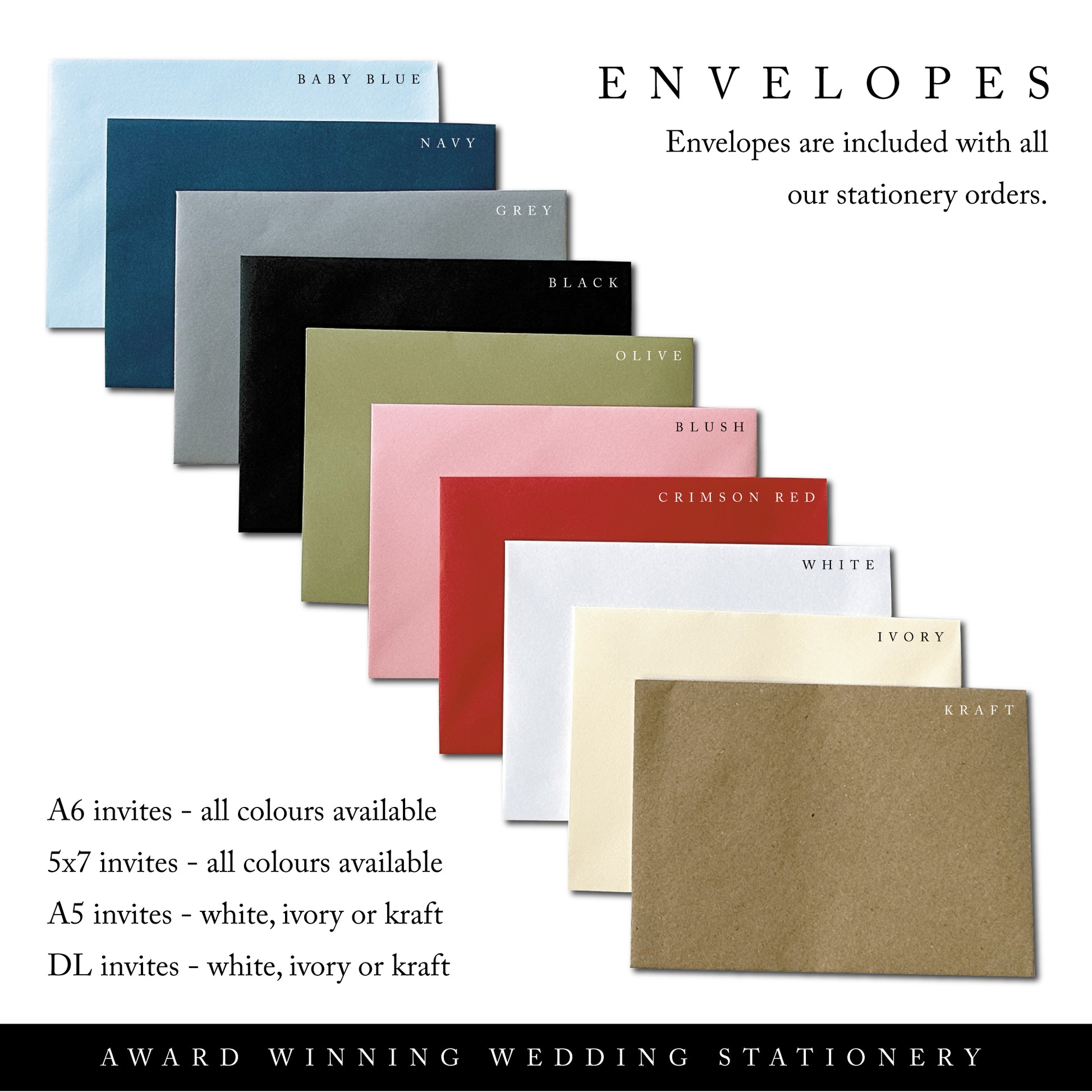 Elevate your wedding stationery with an invitation that makes a statement before it’s even opened. Our Luxury Gatefold Wedding Invitation is beautifully wrapped with a signature belly band of your choice, creating a polished, refined presentation that exudes elegance from the very first glance.