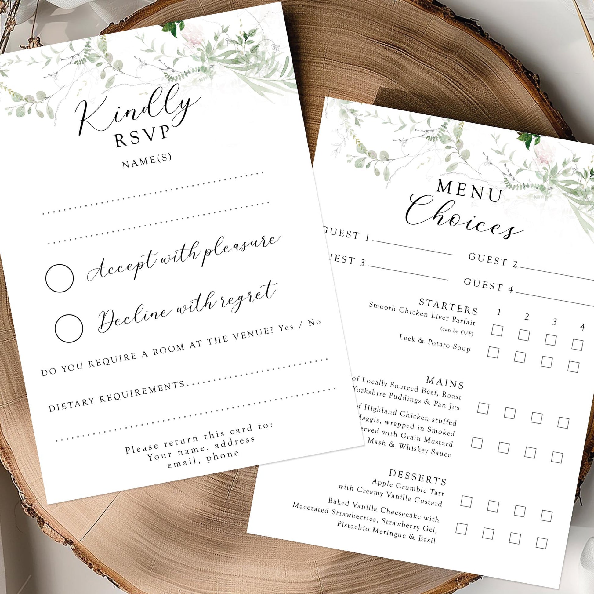 Rsvp Cards (A6 size 148mm x 105mm) We can change the layout of the card/information if required. They can be single or double sided.