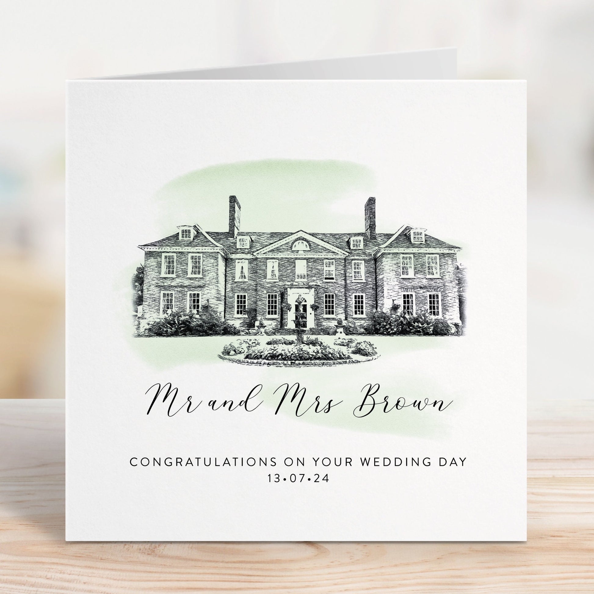 Personalised Wedding Card with Venue Drawing, Congratulations on Your Wedding Day Card, Wedding Anniversary Card